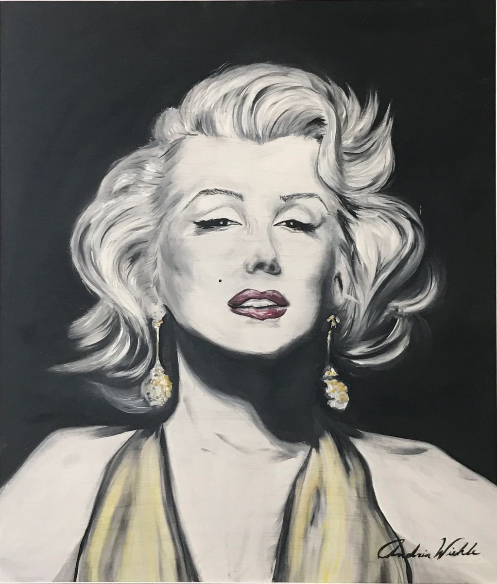 Painting is an intimate process where I feel very connected to the subject matter. Not knowing much about Marilynn Monroe before painting her portrait, I began to appreciate how beautiful she was, but could also sense a deep sadness in her. After painting her I watched several documentaries which gave me context to the sadness I sensed and the